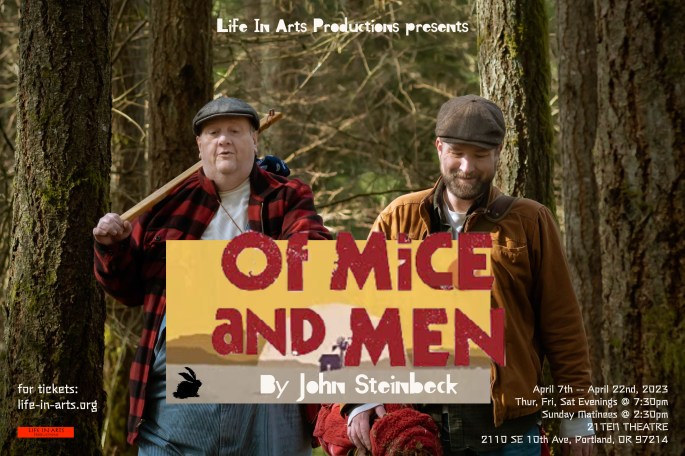 Life In Arts Productions presents John Steinbeck’s immortal classic drama, at what used to be the old Shoebox Theatre space (and Theatre Vertigo) at 2110 SE 10th Ave. The production will run through April 22nd. For more information, go to their website at www.life-in-arts.org, or for tickets: https://life-in-arts-productions.square.site, or you can contact them through their their email at lifeinartsproductions@gmail.com